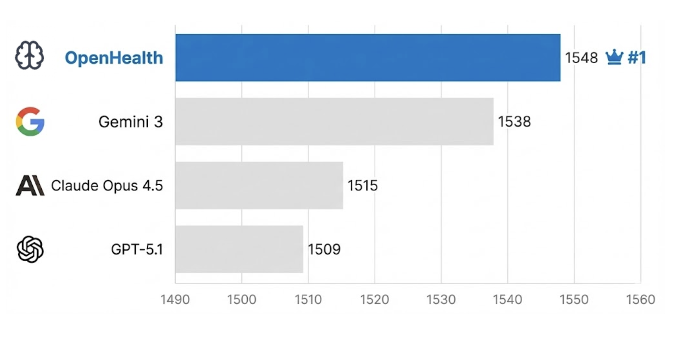 In a blinded, randomized head-to-head study, NPI-verified clinicians ranked OpenHealth above the world's leading models.